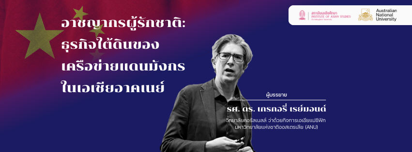 ขอเชิญเข้าร่วมการบรรยายสาธารณะ หัวข้อ “อาชญากรผู้รักชาติ: ธุรกิจใต้ดินของเครือข่ายแดนมังกรในเอเชียอาคเนย์”