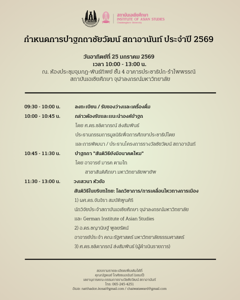 📍 สถานที่จัดงาน: ห้องประชุมจุมภฏ-พันธุ์ทิพย์ ชั้น 4 อาคารประชาธิปก-รำไพพรรณี สถาบันเอเชียศึกษา จุฬาลงกรณ์มหาวิทยาลัย