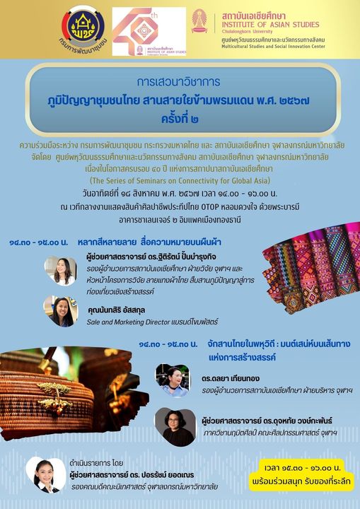 เสวนาวิชาการ ภูมิปัญญาชุมชนไทย สานสายใยข้ามพรมแดน พ.ศ.๒๕๖๗ ครั้งที่ ๒